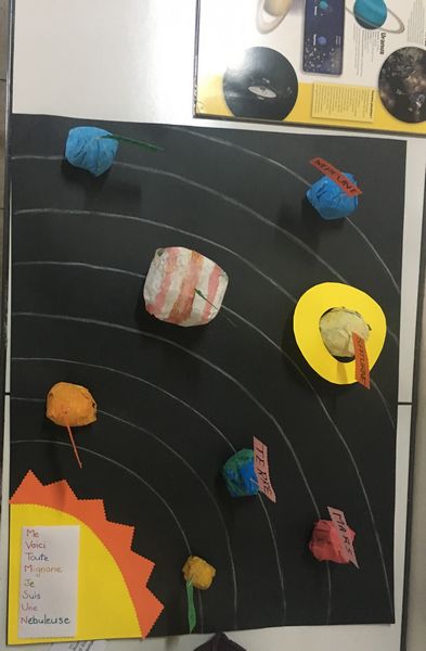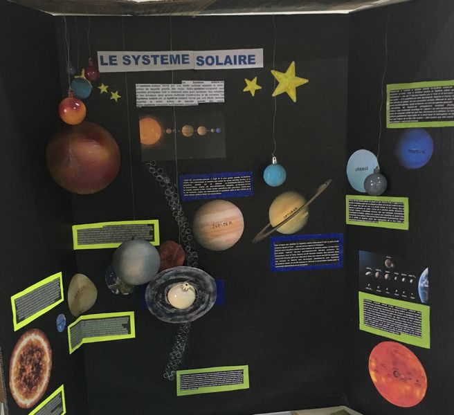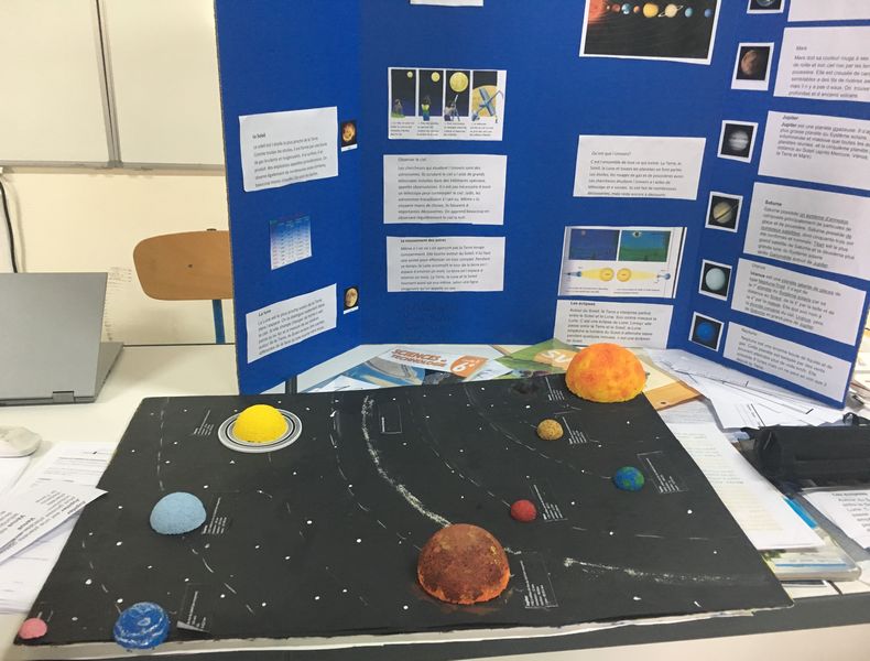 Pour le cours de SVT de M. PIERRE LOUIS, les élèves de 6e du Lycée Français Alexandre Dumas de Port-au-Prince devaient réaliser, en groupe de 3, comme projet pour le deuxième trimestre de l’année scolaire 2017-2018, une maquette du système solaire. Le professeur leur a donné la liberté de choisir les matériaux qui leur conviennent pour la construction de ladite maquette. Par contre, les principes scientifiques suivants ont été exigés :