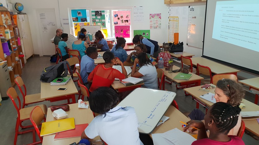 Tout professeur d’un lycée français est en formation tout au long de sa carrière, quel que soit son expérience ou sa formation initiale. Pour cette semaine, les séances d’apprentissage ont été préparées en amont puis mises en pratique auprès des élèves par l’enseignant qui bénéficie ainsi en direct du conseil pédagogique du formateur. Les après-midi ont été consacrés à des actions de formation réunissant l’équipe pédagogique autour des sujets suivants :