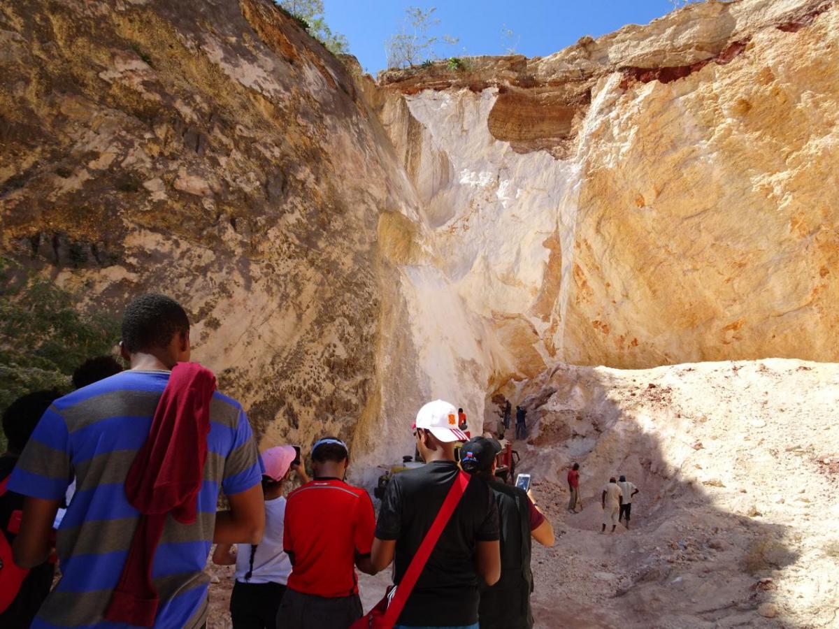 Samedi 26 janvier 2019, une partie des élèves de Terminale S, accompagnée de leur professeure de SVT Mm Athias Corlet et de Mm Amilcar (Docteur en Géologie) ont embarqué à bord du bus du lycée pour une sortie géologique à la carrière Jafé de Carrefour Dufor (photo 1) où ils ont analysé les roches présentes et schématisé l'affleurement.