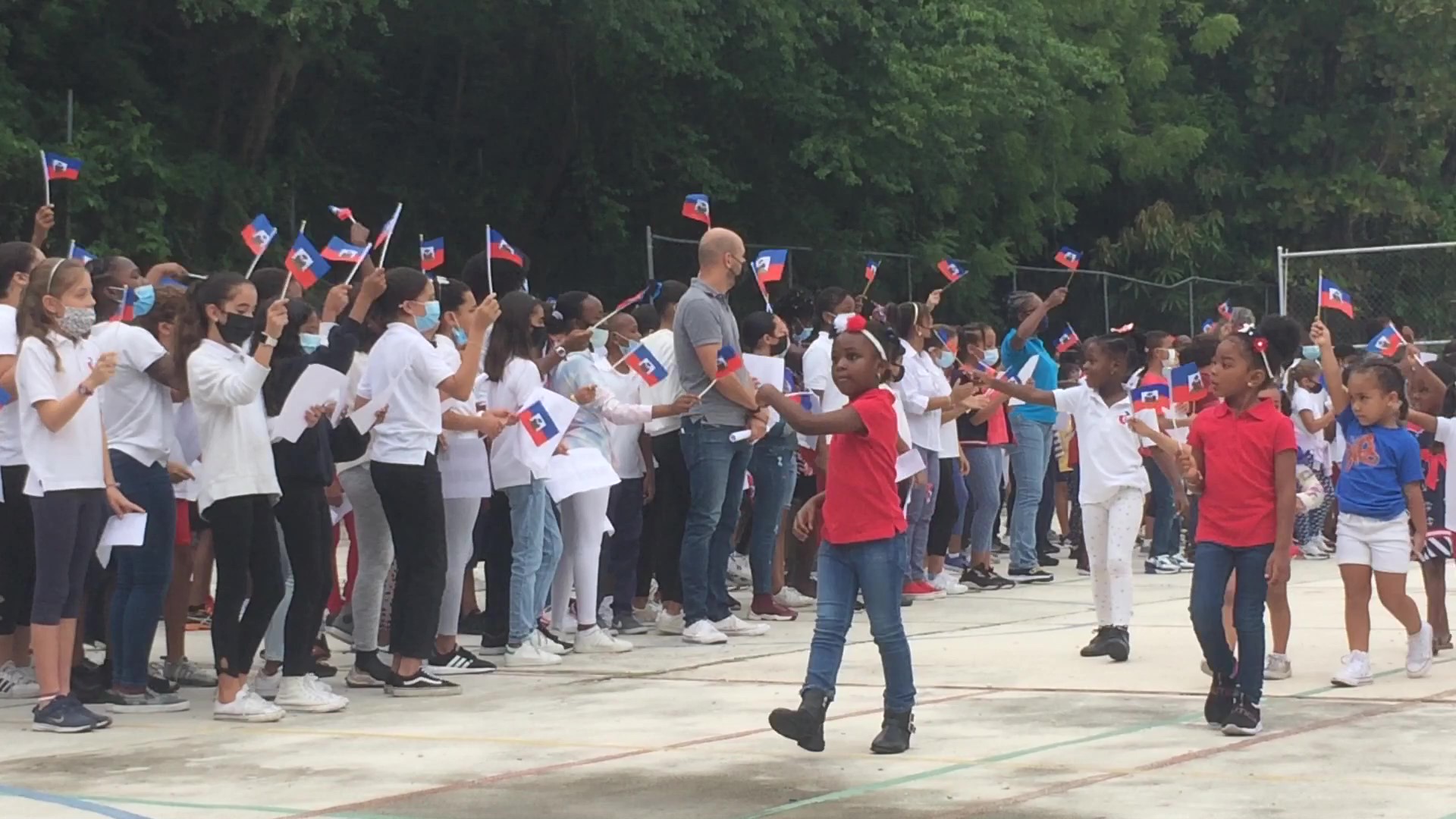 Le Lycée français Alexandre Dumas a commémoré la fête du drapeau haïtien, le lundi 17 mai 2021, sur le terrain de sport.