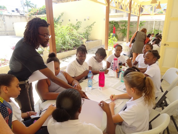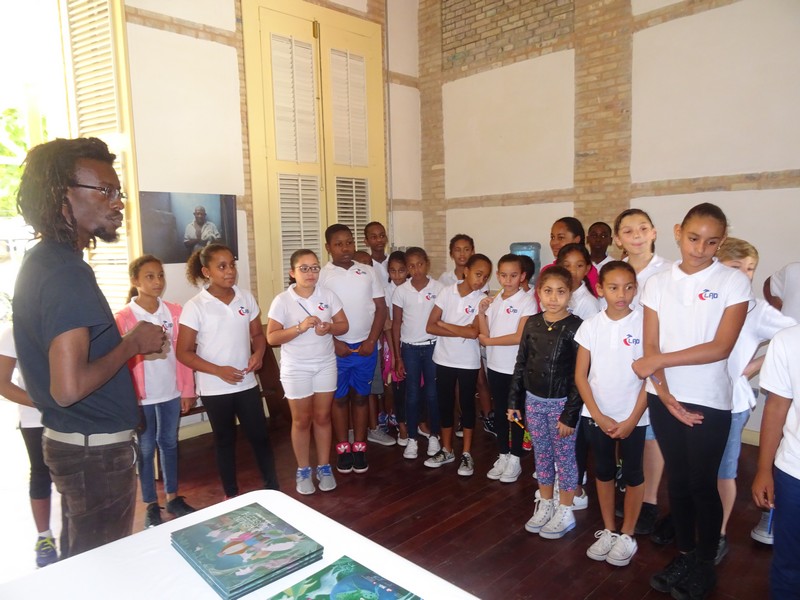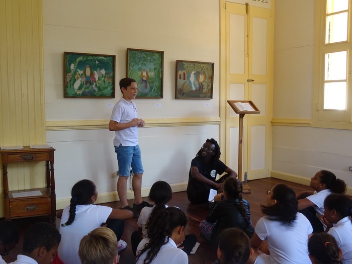 Découverte de l'oeuvre de Jasmin Joseph, du conte en créole (traduit aussi en français et en anglais), et de toutes les peintures qui illustrent le conte du Hibou.